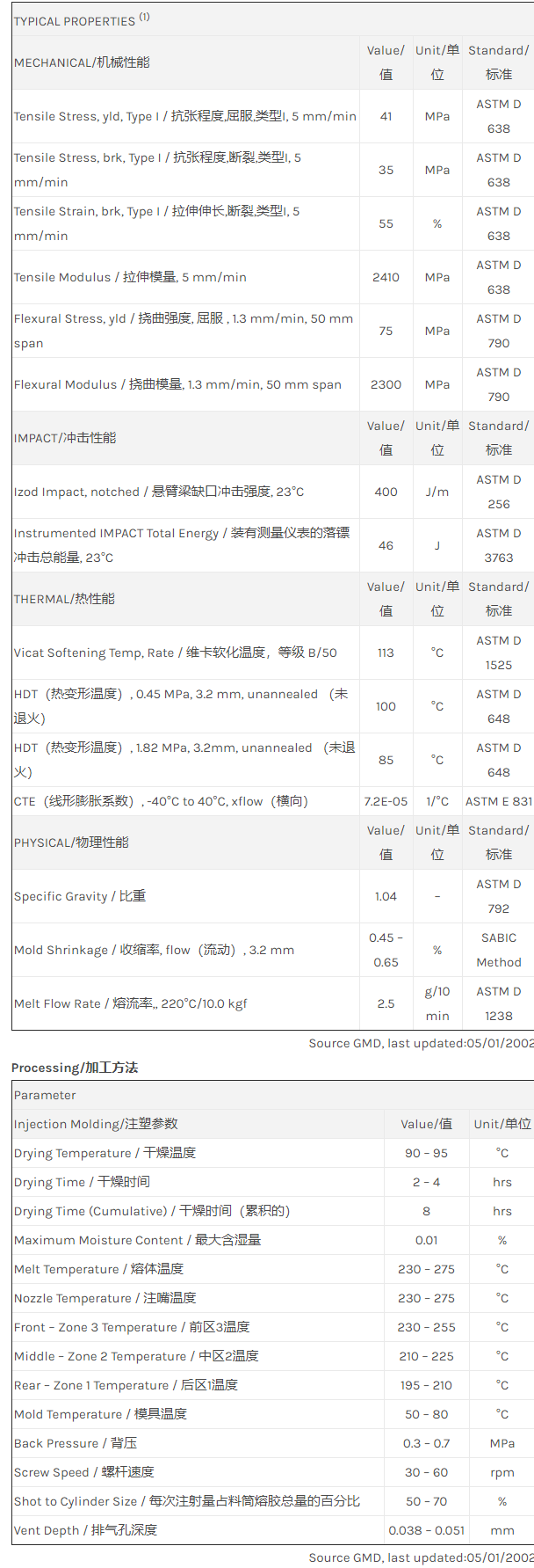 Cycolac ABS GRM2600L物性表