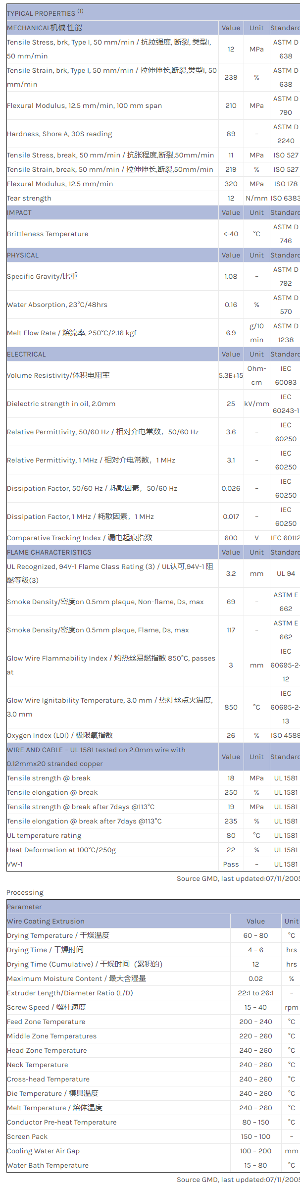 应用范围:产品描述NORYL PPO WCD891A物性表Flexible, halogen free PPE-TPE extrusion grade ideal for applications such as wire insulation and jacket. Flame retardant performance capable of meeting UL VW1 requirements and